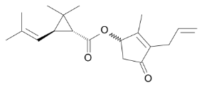 D-allethrin (d-cis,trans-allethrin, (+)-allethrin, (2-methyl-4-oxo-3-prop-2-enylcyclopent-2-en-1-yl)-(1R)-2,2-dimethyl-3-(2- methylprop-1-enyl)cyclopropane-1-carboxylate, CAS#584-79-2) is an ectoparasiticide. It consists of four of the eight stereosiomers of allethrin.